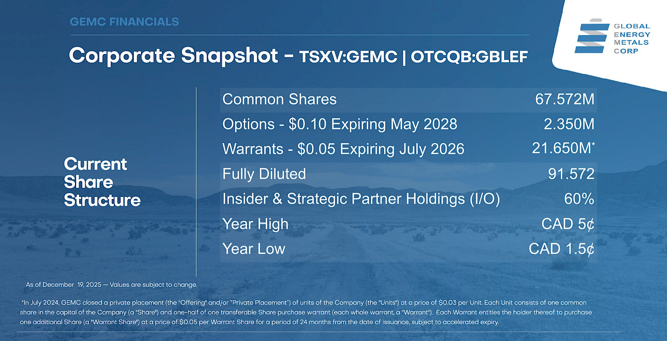 Global Energy Metals Closes Oversubscribed Above-Market Private Placement
