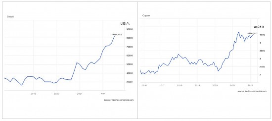 Cobalt has increased 11,500 USD/MT or 16.31% since the beginning of 2022 and copper reached a record high above the $5-per-pound level in March (see Figure 2).