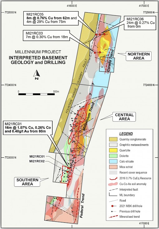 “The 2022 work program at Millennium is aimed at increasing the existing Millennium Resource of 5.9Mt @ 1.08% CuEq1. As Australia looks to establish itself as a global critical minerals supplier, at a time of supply constraint and unprecedented copper and cobalt prices, the Millennium project’s current Resource already provides significant value not yet factored into the current share price. With a combination of resource growth and the project’s granted Mining Leases the project presents a real opportunity for near-term development."