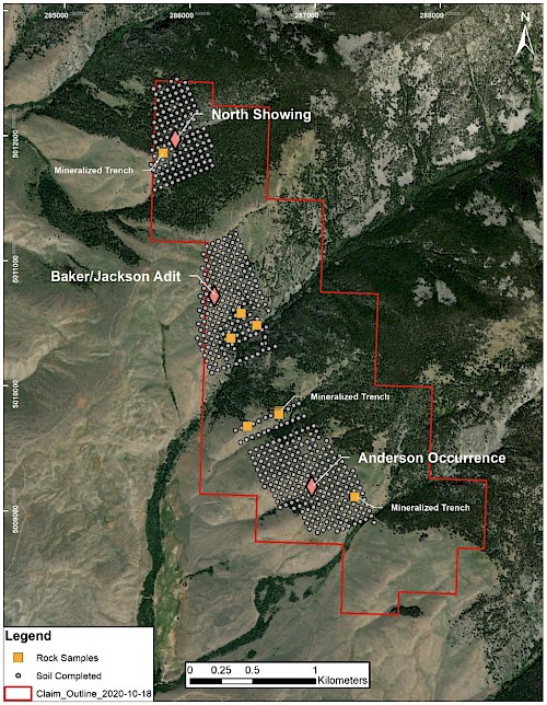 - Soil sampling program resulted in 557 soil samples and 13 rock samples,